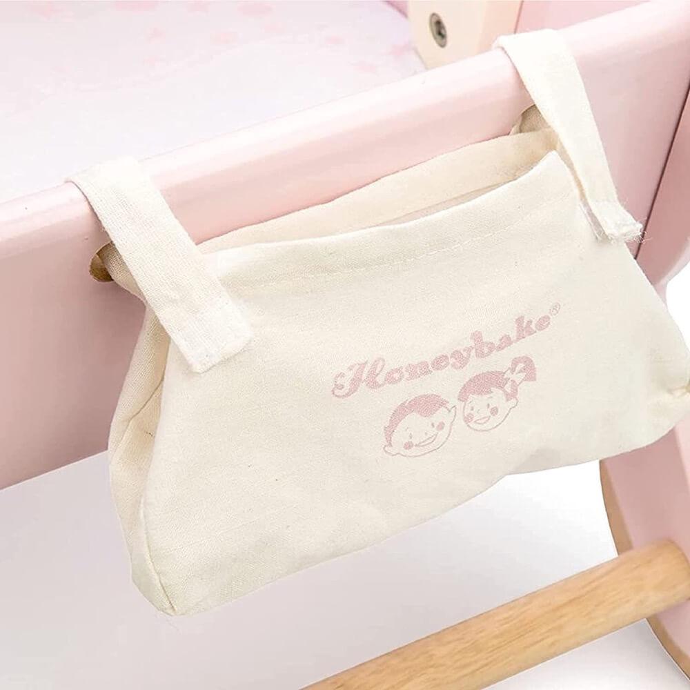 The Rêve Sucré pram has been designed in a vintage, traditional, classic and aesthetic style with beautiful delicate details. Picking up soft pastel colors of pink, cream and white with heart patterns and fine lace. Its sturdy structure, soft padded mattress and unique retractable canopy make it the perfect pram for taking dolls and stuffed animals on walks.