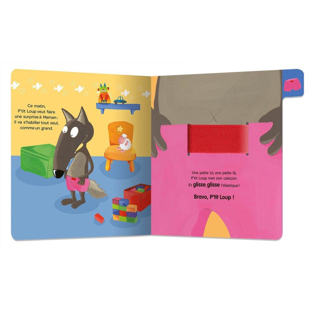 Little Wolf learns to dress. First, the boxer shorts, then the polo shirt, the sneakers... and don't forget the down jacket! A cardboard book with a mechanism on each page to help you master all the steps of dressing: from the zipper to the Velcro fasteners and snaps.
