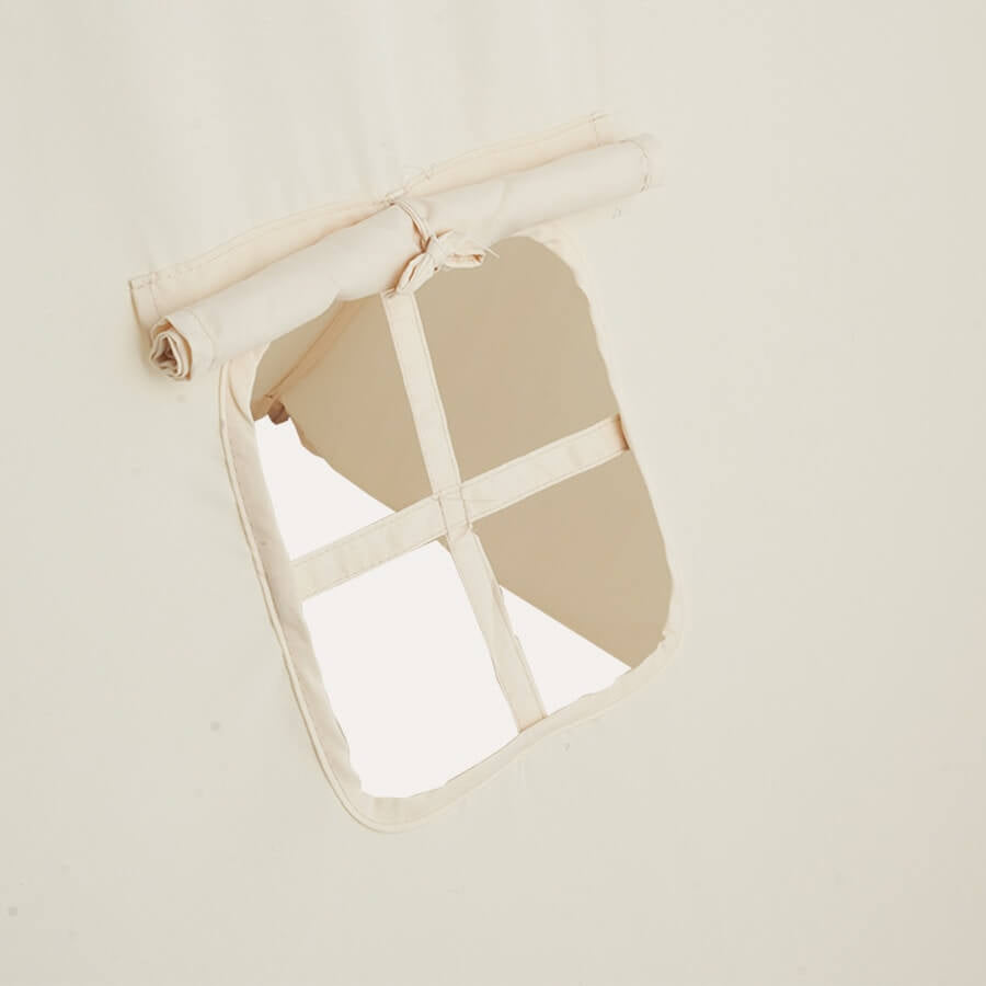 This tent is made from heavy-duty denim fabric, with a small window to peek into the outside world. Its wooden structure ensures great solidity and longevity.