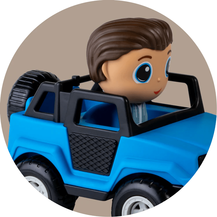 Embark on an adventure with the Flek all-terrain vehicle , designed to stimulate the imagination of little explorers! Your child can place a figure behind the wheel and set off to discover new terrains thanks to its robust all-terrain tires , perfect for playing both indoors and outdoors.