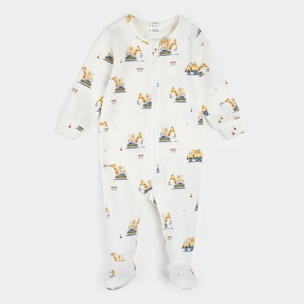 Setting the stage for big dreams and little adventures, this footed sleeper with an all-over digger print is perfect for your curious little one. Designed for both parent and baby, it's made from our ultra-soft, much-loved blend of organic cotton and modal, and features a two-way zipper. The built-in feet protect little toes on the construction site of the house, and the rolled-up sleeves leave their hands free to stack, build, and knock over toys again and again.