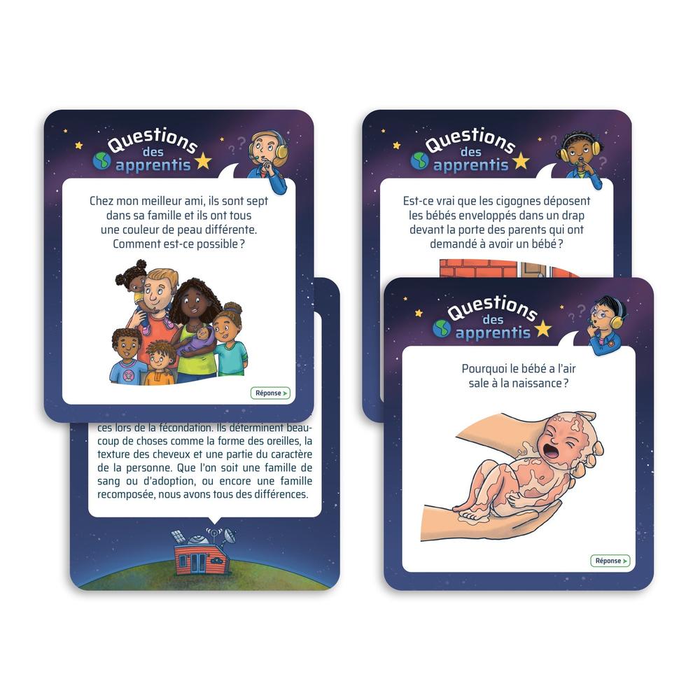 The game provides a relaxed and friendly setting for discussing these topics, encouraging open and natural dialogue. It also offers an opportunity to raise children's awareness of the diversity of family realities and the different ways families can be structured. Finally, it stimulates the development of a healthy and informed curiosity about the human body, the diversity of families, and how life works.