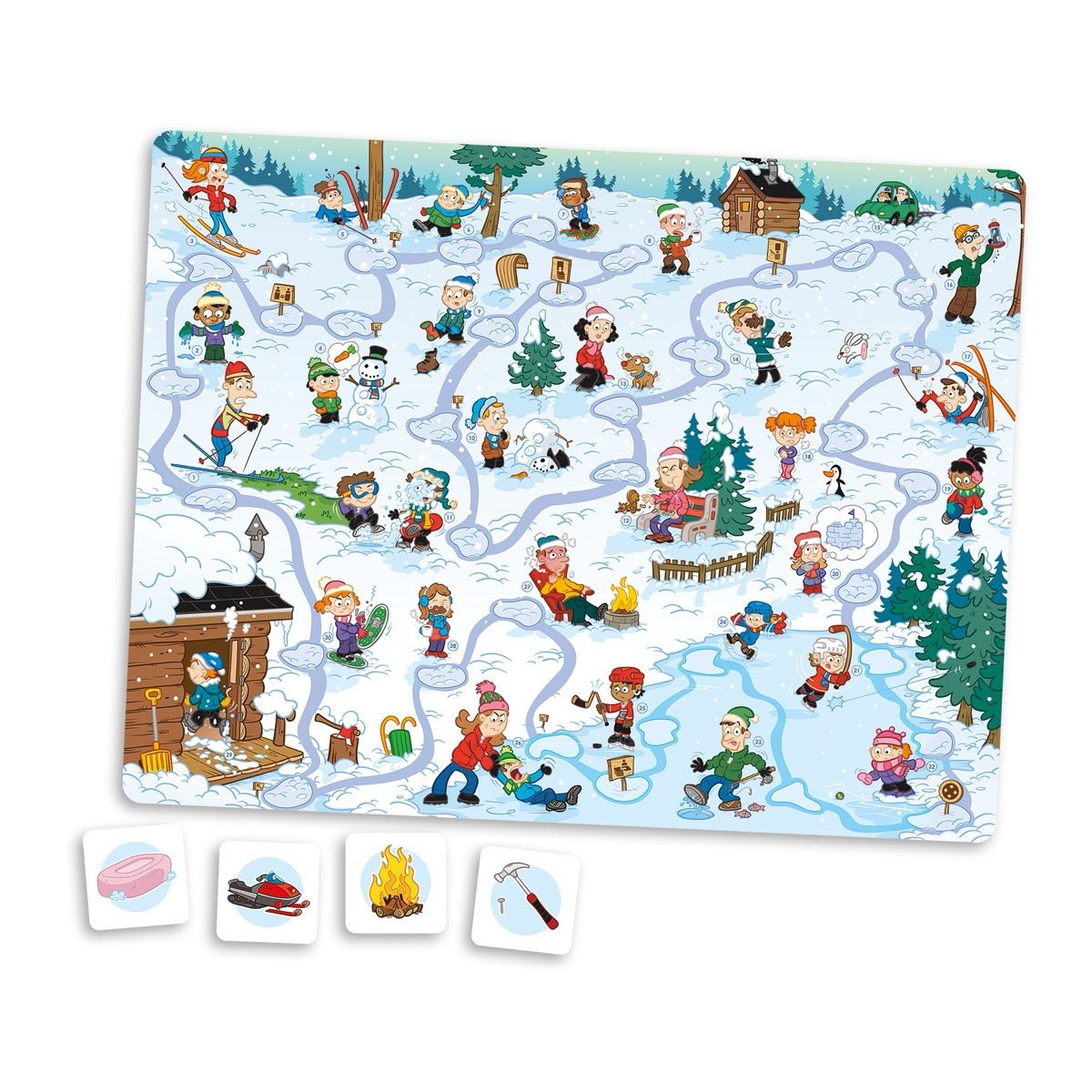 - No Problem includes a game board featuring a summer camping scene on one side and a winter outdoor base scene on the other side.