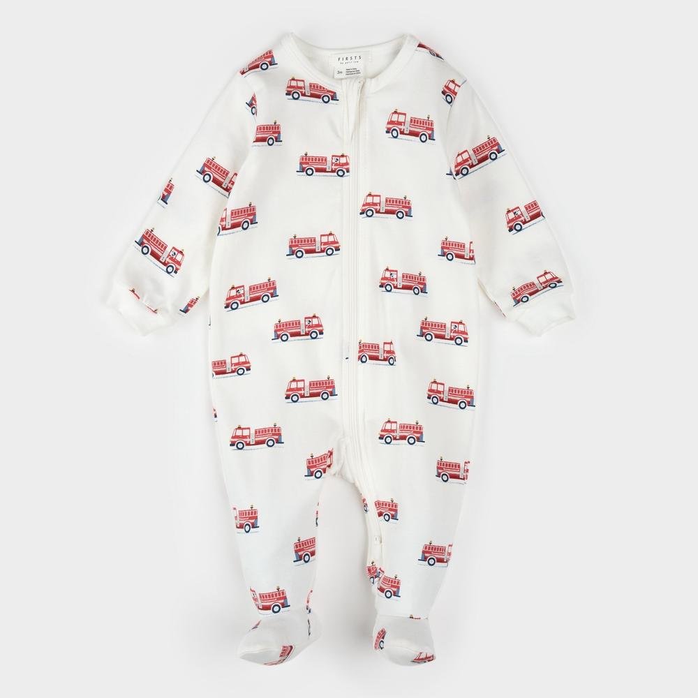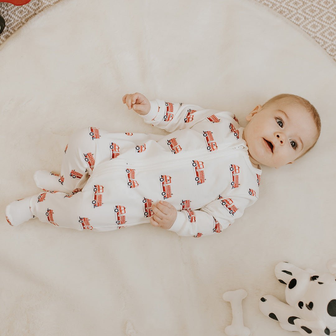 For toddlers who love trucks, this sleeper adorned with a fire truck print is made from ultra-soft organic cotton jersey for absolute comfort all night long.