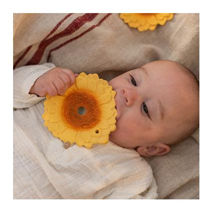 Sun the Sunflower is a teething, bath, and sensory toy for babies. Sun the Sunflower will delight and stimulate baby's senses thanks to its central hole in the flower disc. They can interact with it during bath time and discover new textures with their fingers!