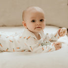Perfect for Easter egg hunts and spring harvests, this footed sleeper features our signature carrot print. Made from soft, stretchy ribbed cotton, it keeps your little bunny cozy without restricting movement. The built-in feet wrap their tiny toes in gentle warmth as they explore, while the two-way zipper makes nighttime diaper changes a breeze for everyone. Matching pajamas are available, making it a great choice for family days at home.
