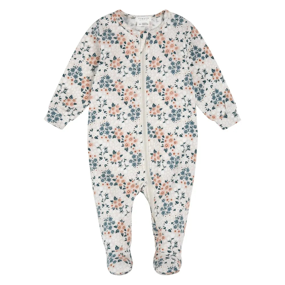 Lay her down on a bed of flowers for the sweetest naps. This dreamy footed sleeper is adorned with our spring floral print and is perfect for newborns. The built-in feet protect her little toes while her hands explore her surroundings. Made from a soft and silky cotton and modal jersey, the sleeper is light and gentle on her skin while maintaining the ideal temperature for cuddles and playtime. The two-way zipper makes changes quick and easy for mom, dad, and baby, so everyone can drift off to sleep for a well-deserved rest.
