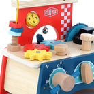 A wooden workbench, yes, but multi-activity! Our workbench is decorative, but not only! It offers many activities for your child, while allowing them to do just like the grown-ups. A circular saw that makes jack jack, nuts to travel on a metal wire, a small wooden hammer that, when hitting nails, will activate a bell.