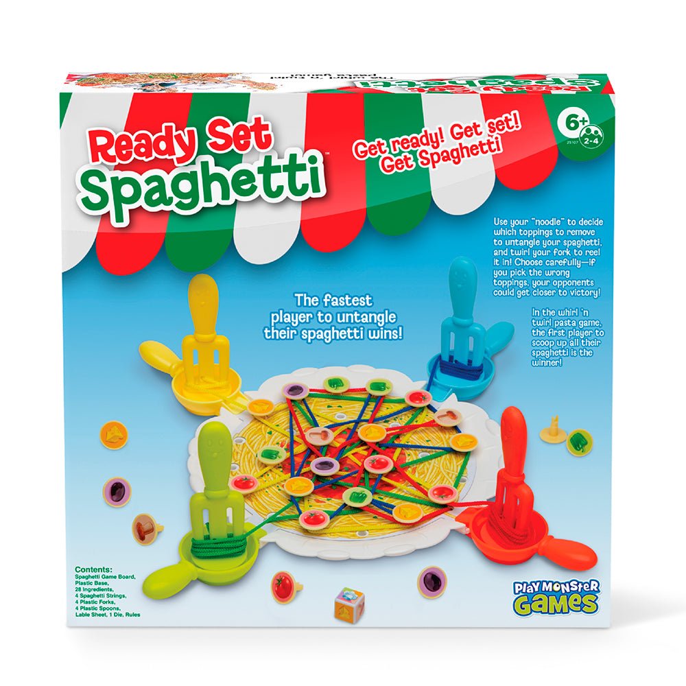Choose carefully: if you choose the wrong toppings, your opponents could get closer to victory! In the twirling pasta game, the first player to collect all their spaghetti is the winner!
