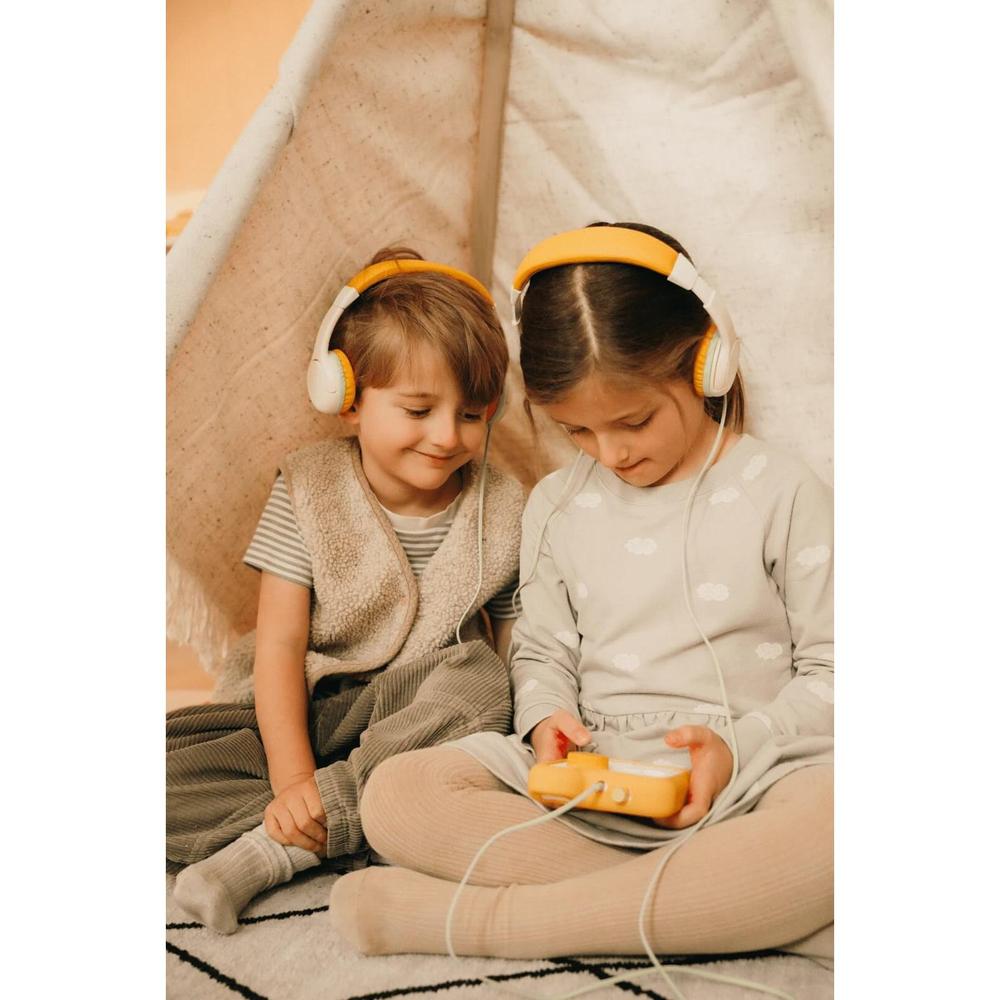 This headset allows you to connect another Fabli headset, thus offering the possibility of listening to content together, with ease.