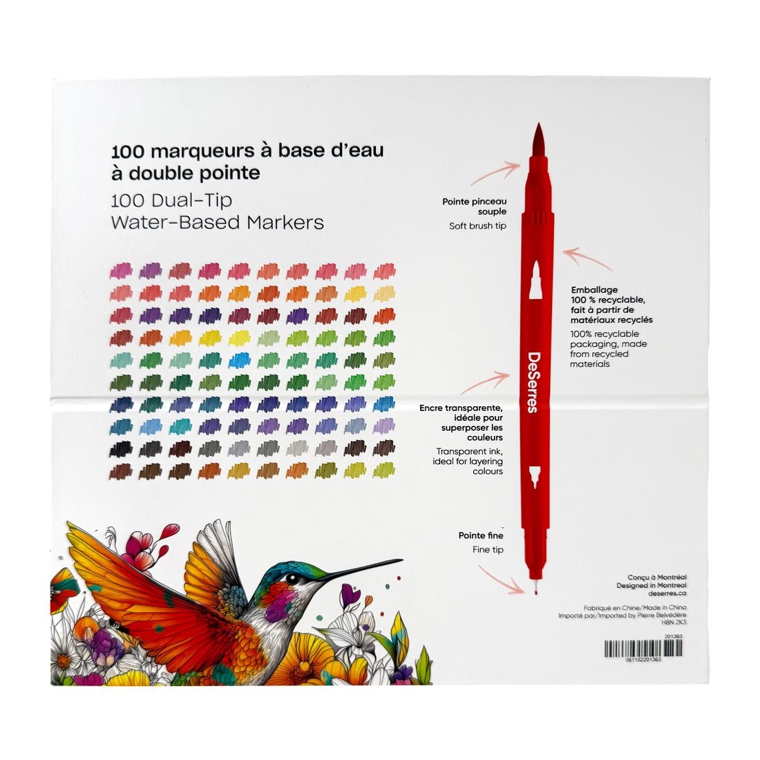 100 marqueurs de couleurs à double pointe