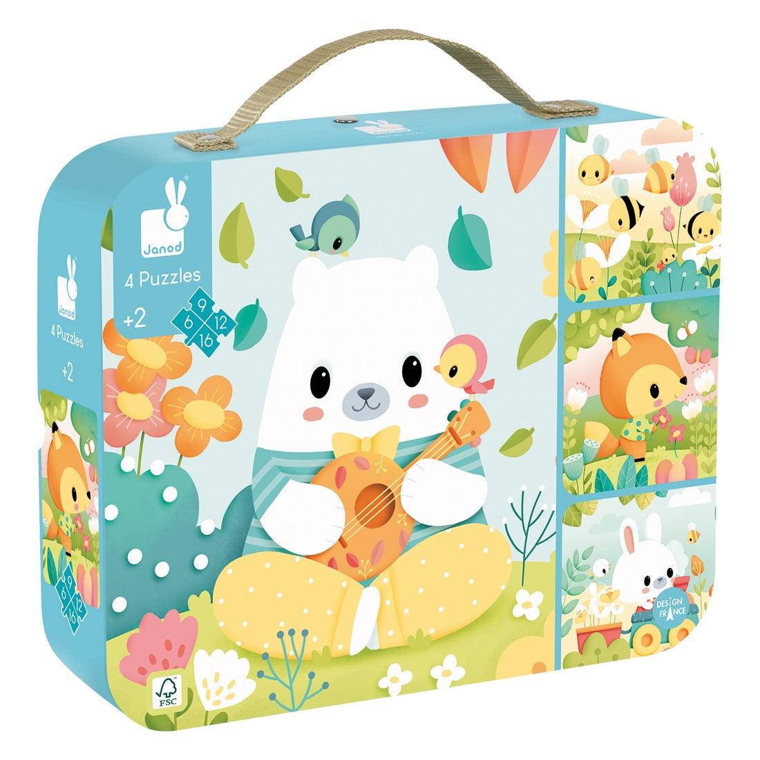 Chaque puzzle, composé de 6, 9, 12 et 16 pièces, stimule la motricité fine et la concentration tout en étant un défi adapté à chaque étape de l’apprentissage de l’enfant.