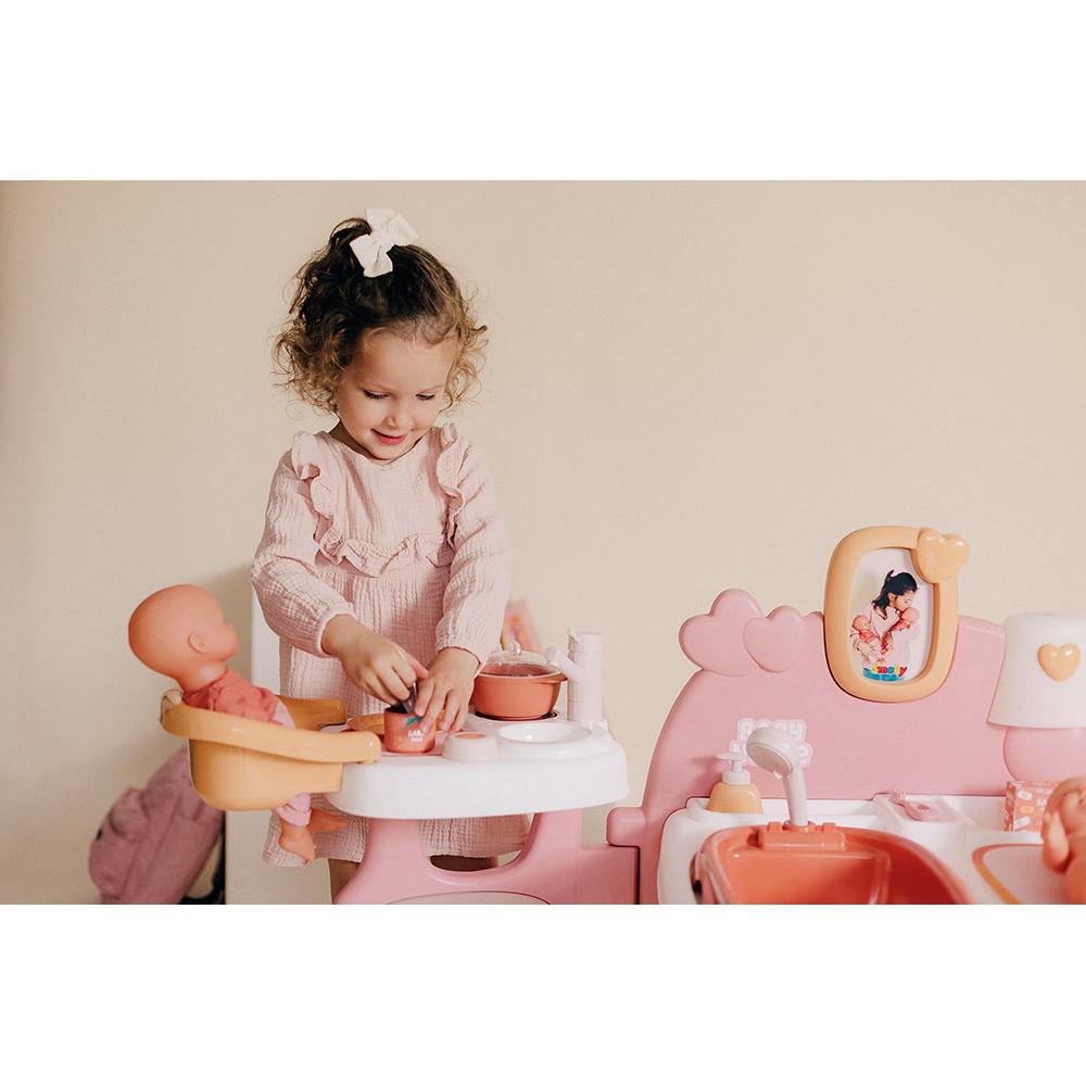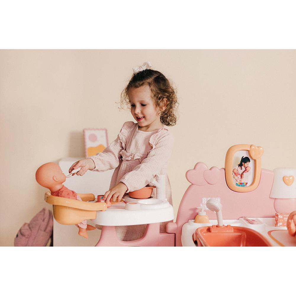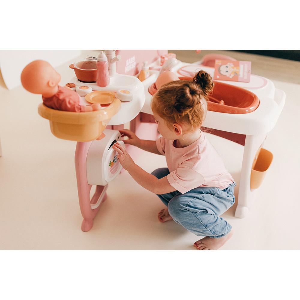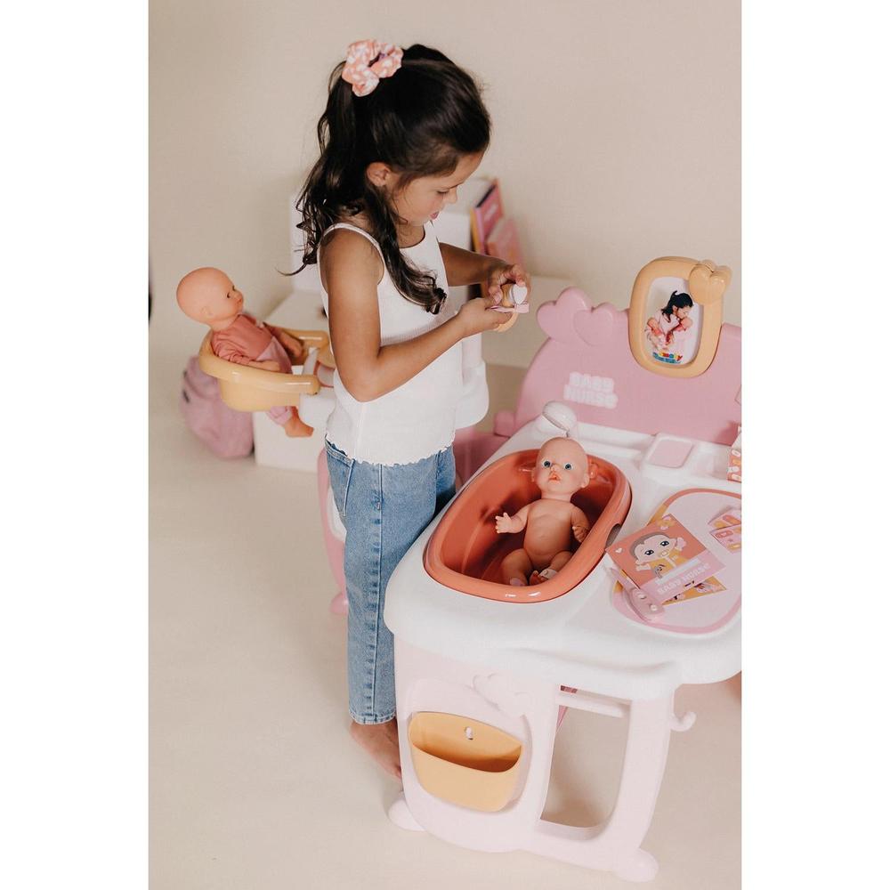 La grande maison des bébés offre un grand espace pour jouer à la maman! Tu pourras t'occuper de ton poupon pendant de longues heures de jeux grâce aux 3 pièces différentes dédiées au bien-être de ton petit : cuisine, salle de bain et chambre !