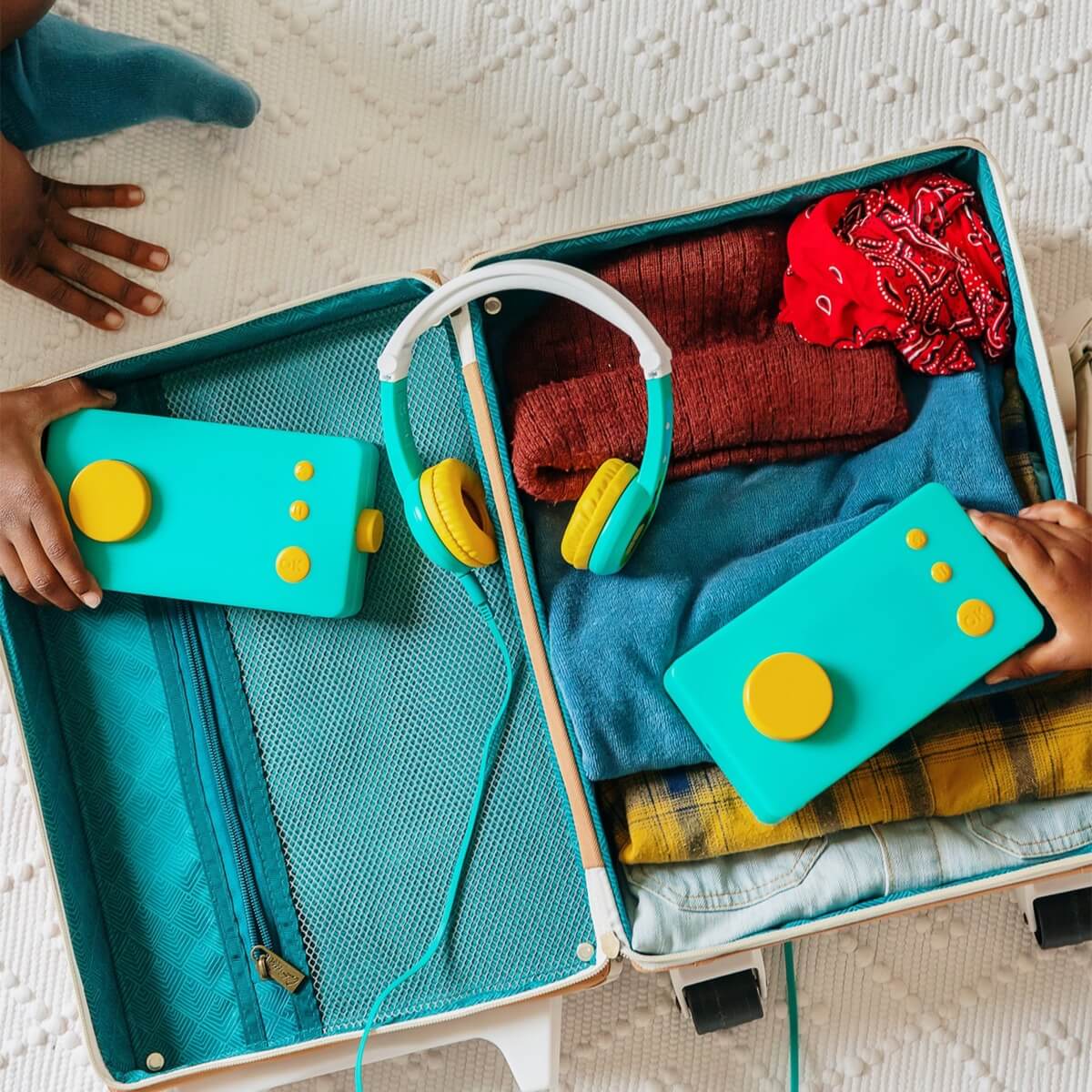 Ses couleurs iconiques bleu et jaune vifs de Lunii et assortis à Ma Fabrique à Histoires ne passent pas inaperçues. Chaque Octave est livré avec une double prise jack, vous pouvez, vous aussi, vous y joindre, vous blottir et écouter des histoires ensemble!