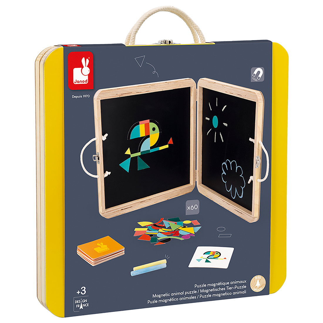 Laissez-vous embarquer au cœur de la faune sauvage avec ce magnifique puzzle magnétique. La mallette en bois se compose de 2 surfaces magnétiques.