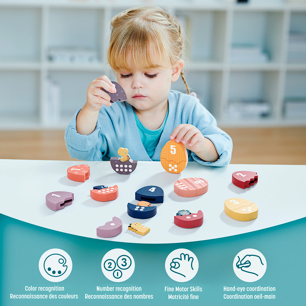 Chaque œuf unique aide les enfants à apprendre les chiffres et les couleurs en s'amusant. Parfait pour développer le comptage et la résolution de problèmes chez les tout-petits.