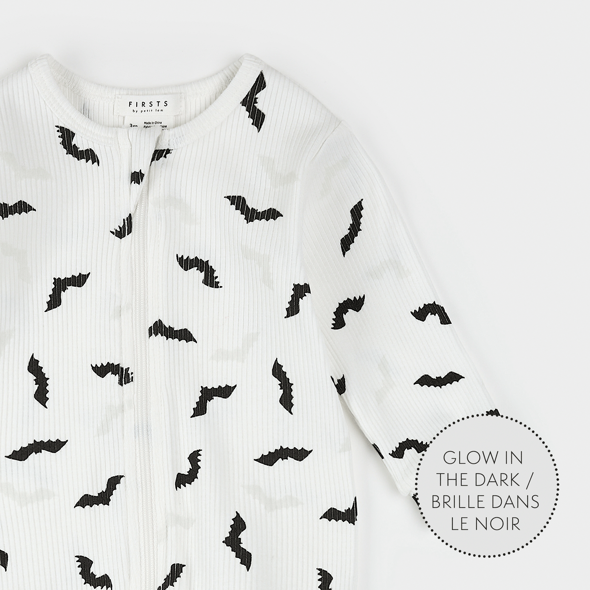 Ajoutez une touche de frisson à l'heure du dodo avec cette dormeuse à imprimé de chauves-souris qui brille dans le noir!
