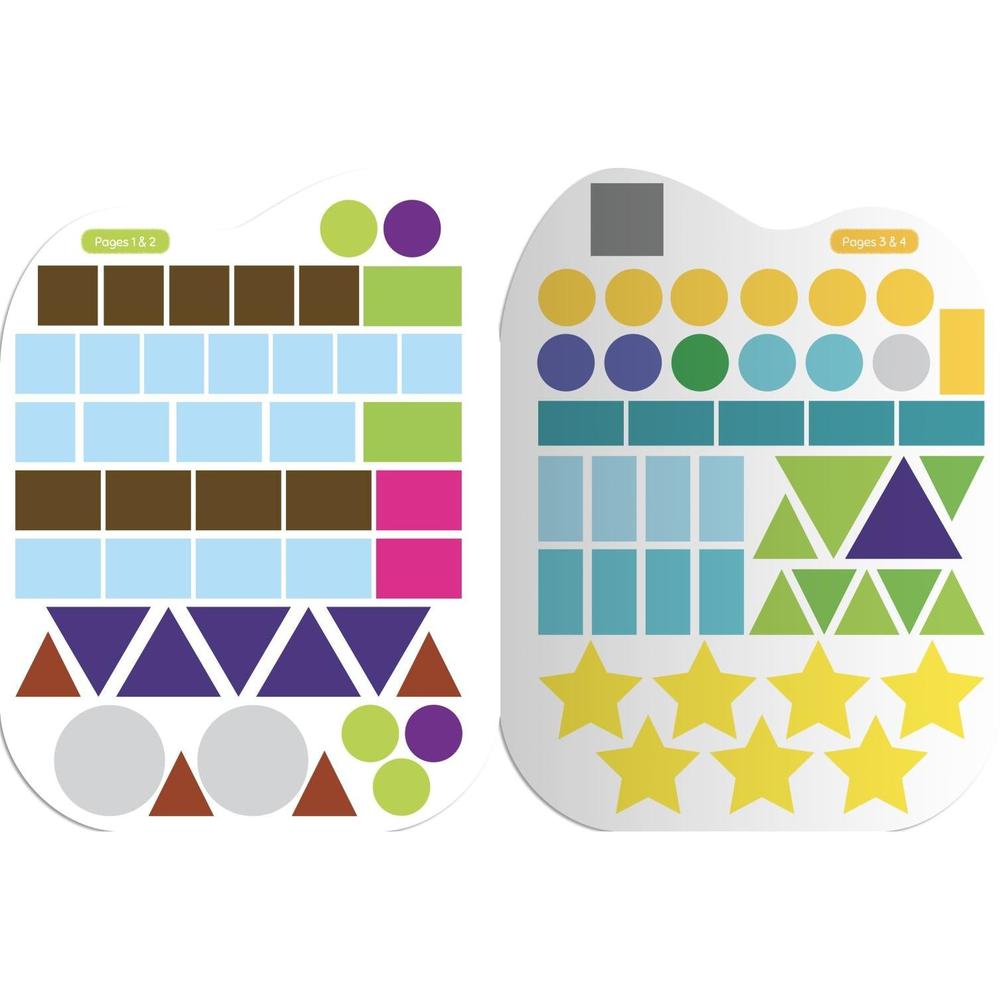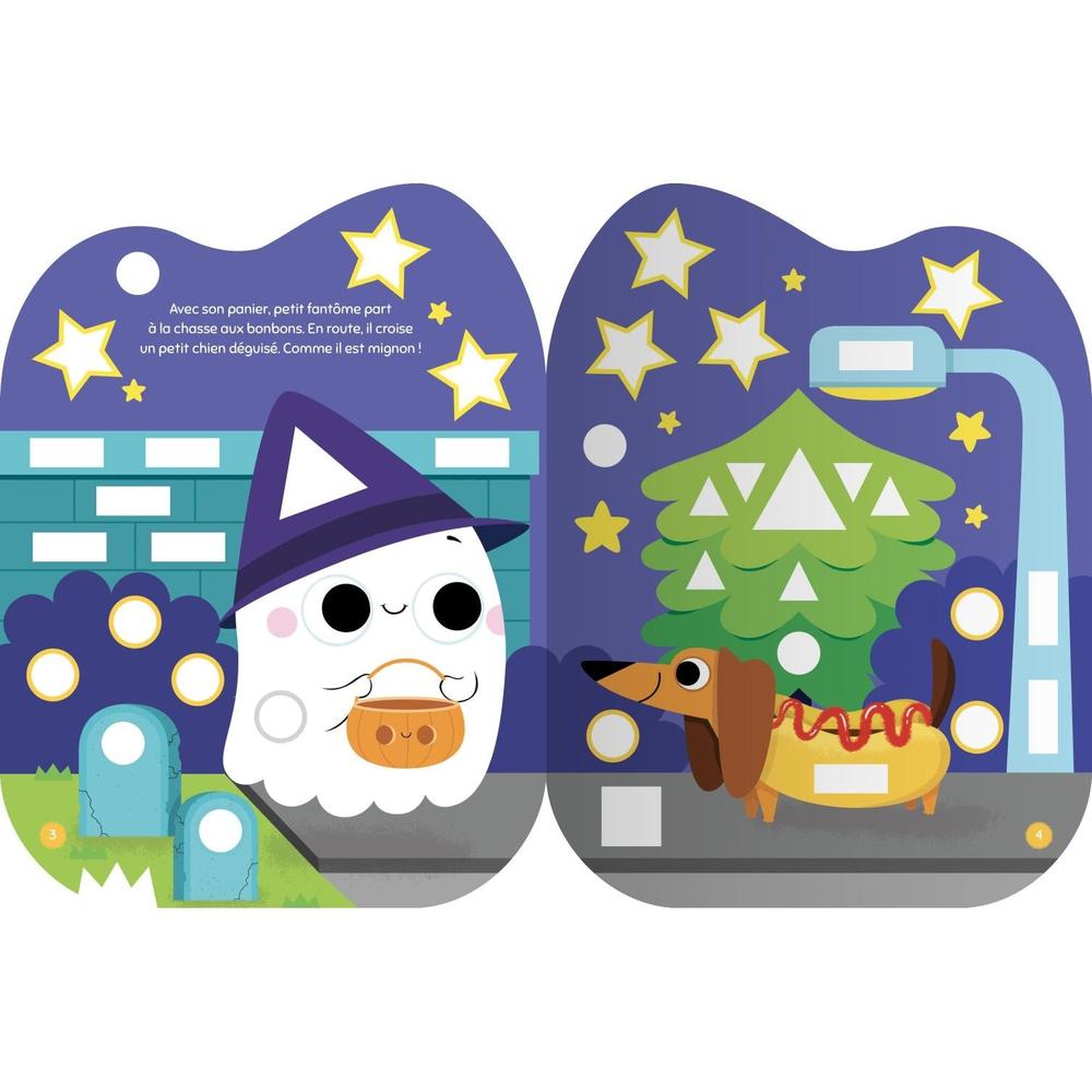 Un cahier de plus de 200 gommettes de formes géométriques, qui servent à compléter l’histoire de petit fantôme, à travers un cahier de décors détachable.