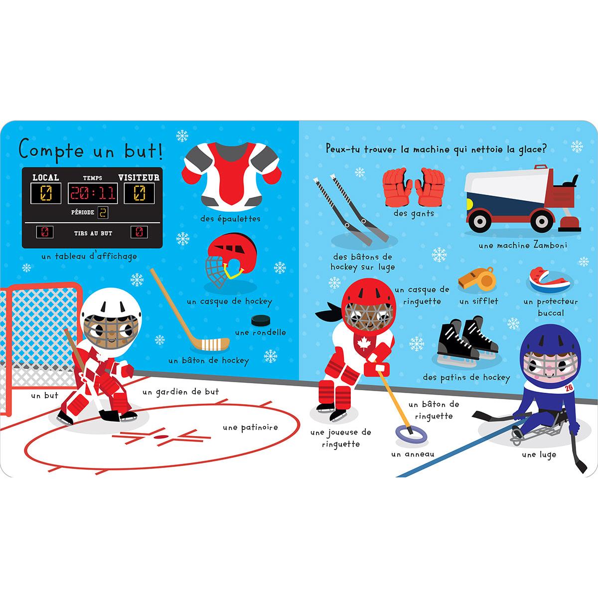 Du hockey à la ringuette en passant par le basketball et le football, l’apprentissage des premiers mots n’a jamais été aussi amusant! Les pages présentent quelques-uns des passe-temps favoris des Canadiens, comme la crosse, la luge, la raquette, le vélo et bien d’autres.