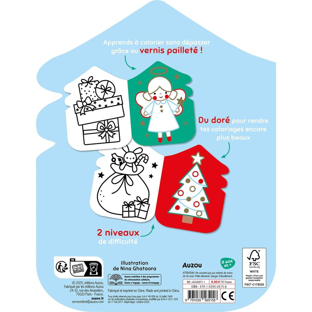 Découvre tes nouveaux coloriages doré sur le thème de Noël avec deux niveaux de difficulté : le premier niveau pour apprendre à bien colorier sans dépasser avec l'aide du vernis à paillettes et le deuxième niveau sans vernis à paillettes pour montrer tes talents !