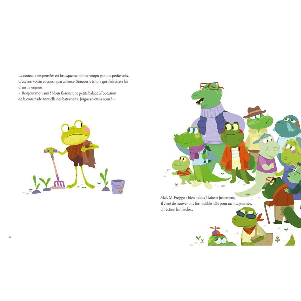 Ce matin, M. Froggo s’est levé du pied gauche, mais une grenouille ne se laisse jamais abattre : il va tout faire pour passer une excellente journée. Jardinage, shopping, ski-moustique et nénuparapente, rien n’y fait. Il ne retrouve pas le sourire. Il rentre alors chez lui et croise son ami Bruno, le mulot…