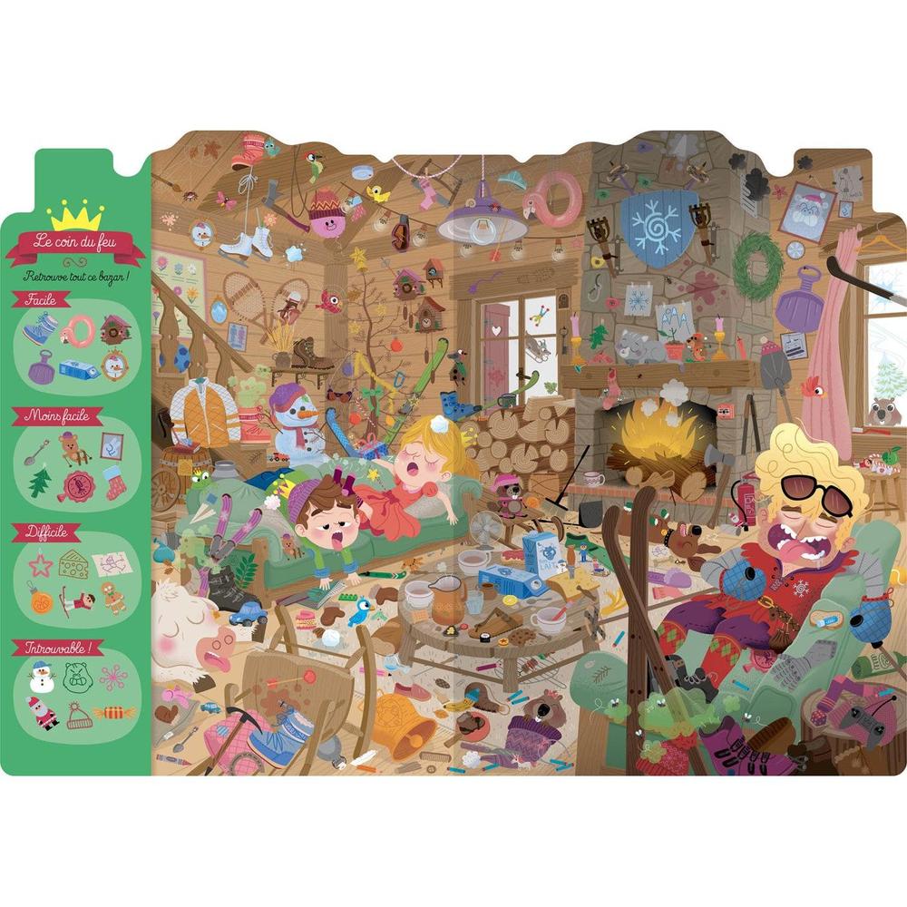 Un cherche et trouve, avec 26 éléments à retrouver par ordre de difficulté dans chaque lieu du Chalet : le coin du feu, la fondue, la piste, l’atelier, l’étable et le pâturage.