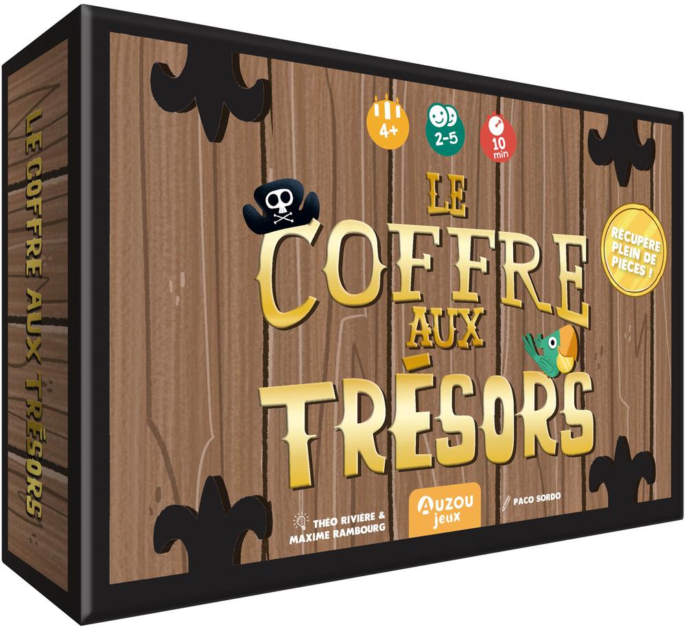 Tu viens de trouver un super coffre rempli de trésors ! Collectionne un maximum de pièces pour gagner la partie, mais attention aux autres pirates qui désirent le même butin que toi ! Un jeu de chance et de tactique !