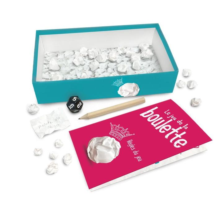 Jeu de devinettes procurant du plaisir sans fin où vous devrez faire preuve de rapidité d’esprit. Écrivez ce qui vous passe par la tête ou laissez-vous guider par le thème révélé par le dé. Croyez-vous les autres capables de faire deviner ce mot? Donnez tous les indices que vous voulez, n’utilisez qu’un seul mot, mimez et risquez-vous même à prendre une pose loufoque. Chiffonnez. À vos marques, prêts? Déboulettez!