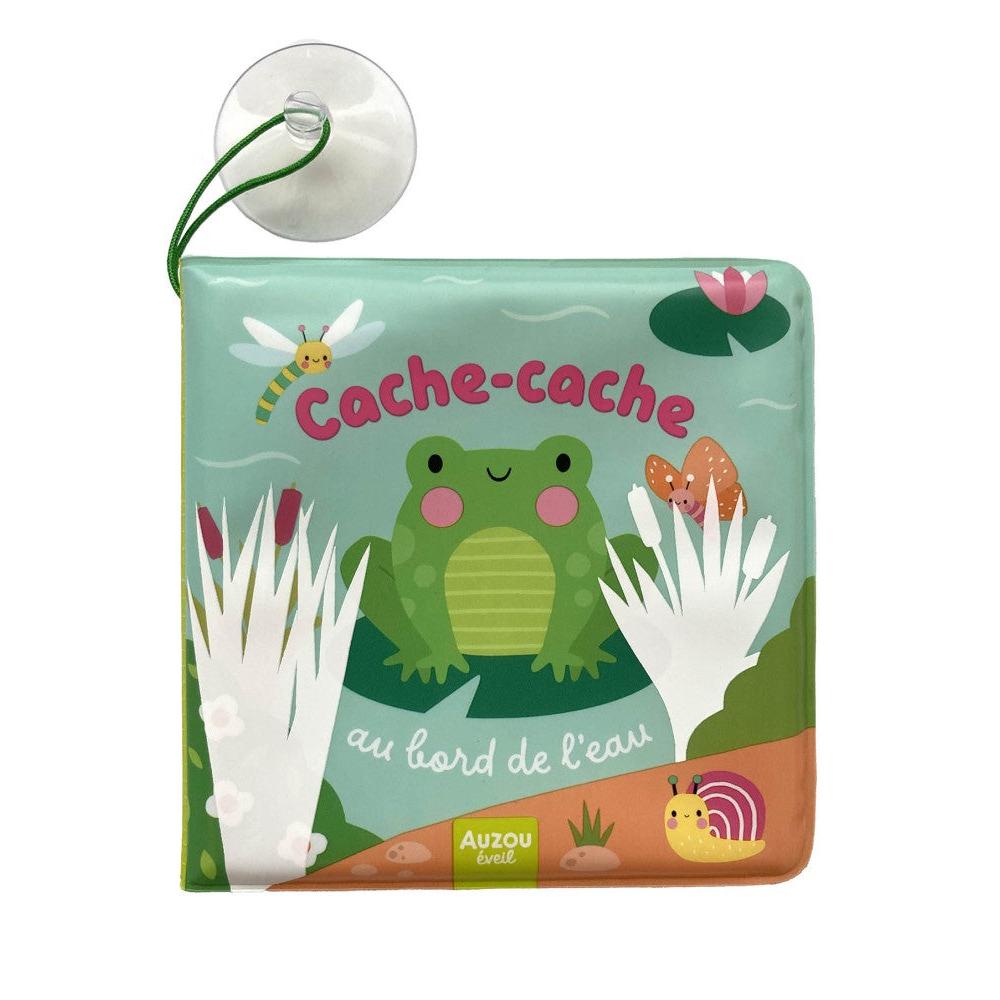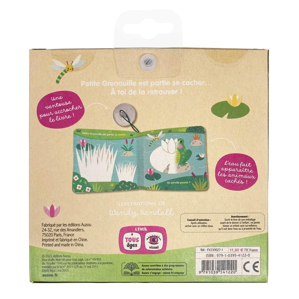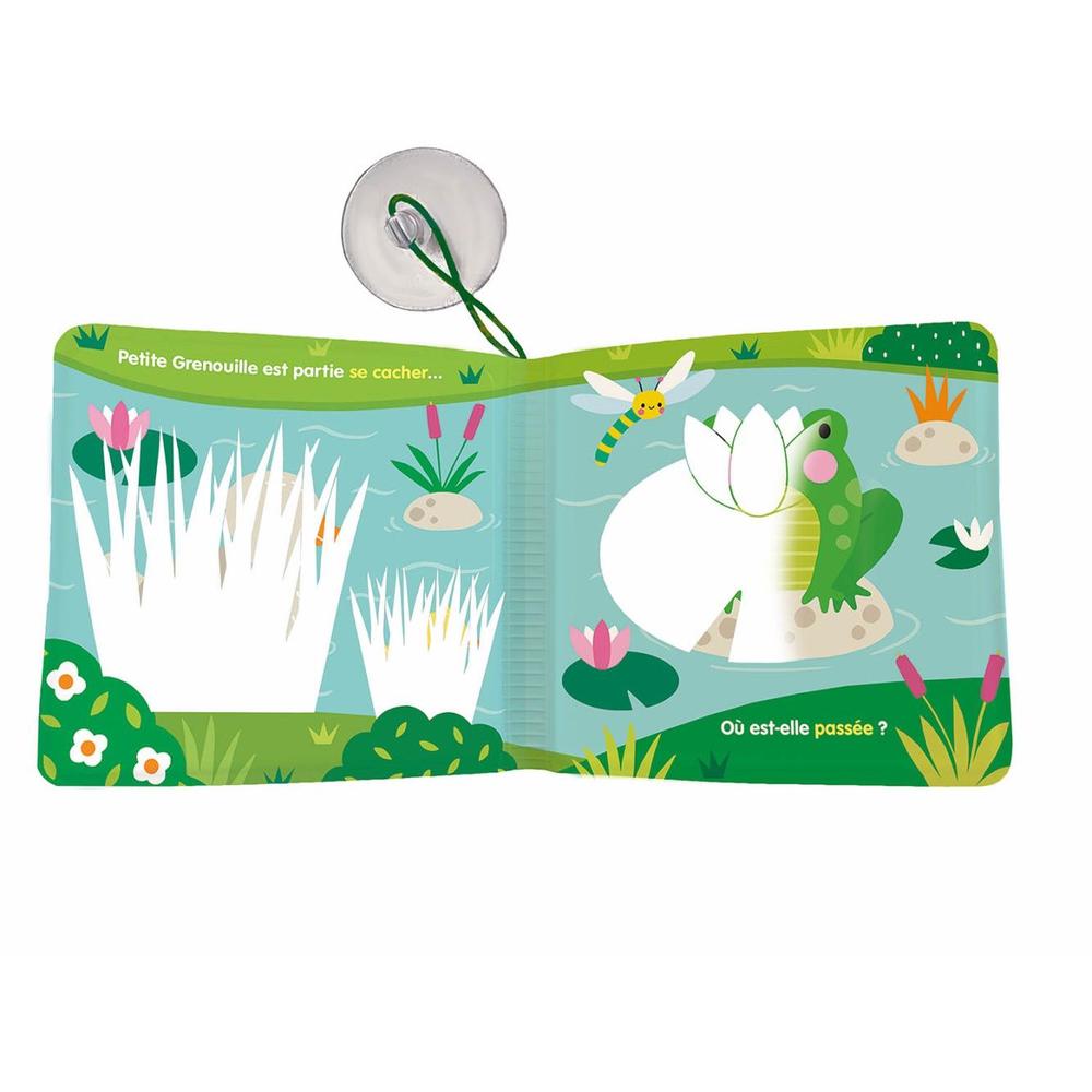 Suivez la petite grenouille qui joue à cache-cache dans la mare ! Sur chaque page, l'enfant interagit avec l'histoire : en plongeant son livre dans l'eau, des zones blanches (de peinture magique) disparaissent et découvrent des éléments cachés !