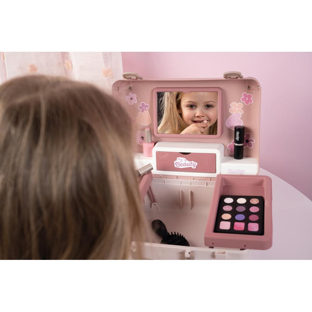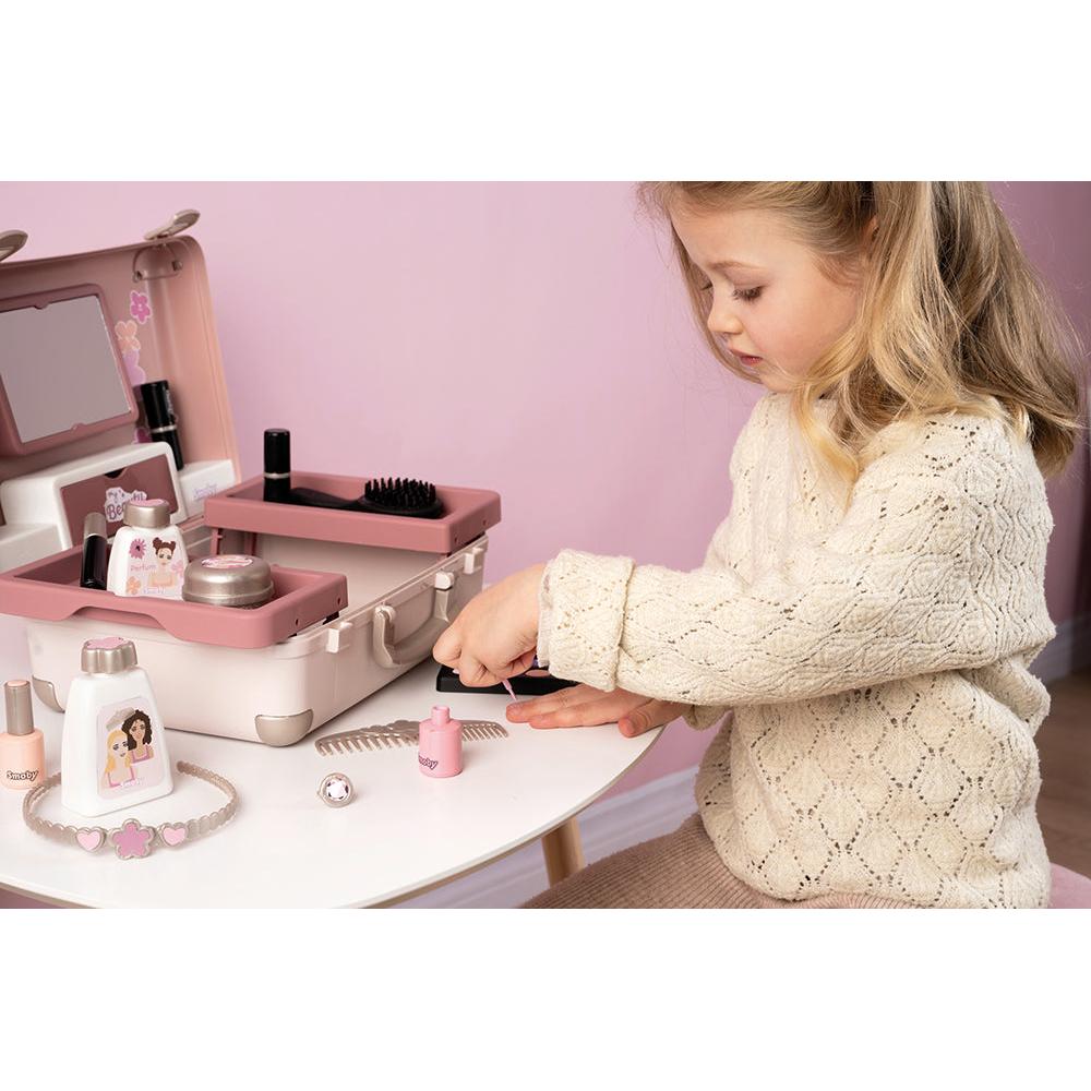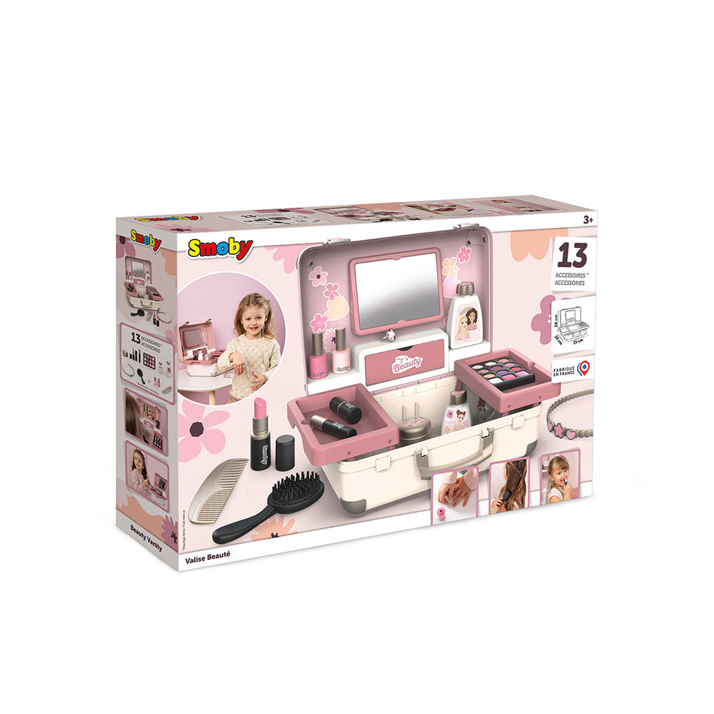 Vanité de beauté facile à transporter, regroupant 3 univers: coiffure, manucure, maquillage.