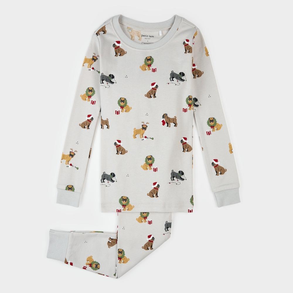 En hommage à leur compagnon à quatre pattes préféré, cet ensemble pyjama festif est orné de notre adorable imprimé de carlins festifs. Confectionné en coton côtelé biologique, il garde votre petit à la température idéale pour faire la sieste… ou courir après le chien dans la maison! Les poignets et chevilles côtelés gardent les mains et les pieds libres, tandis que la bande de taille élastique permet un habillage facile et autonome chaque matin.