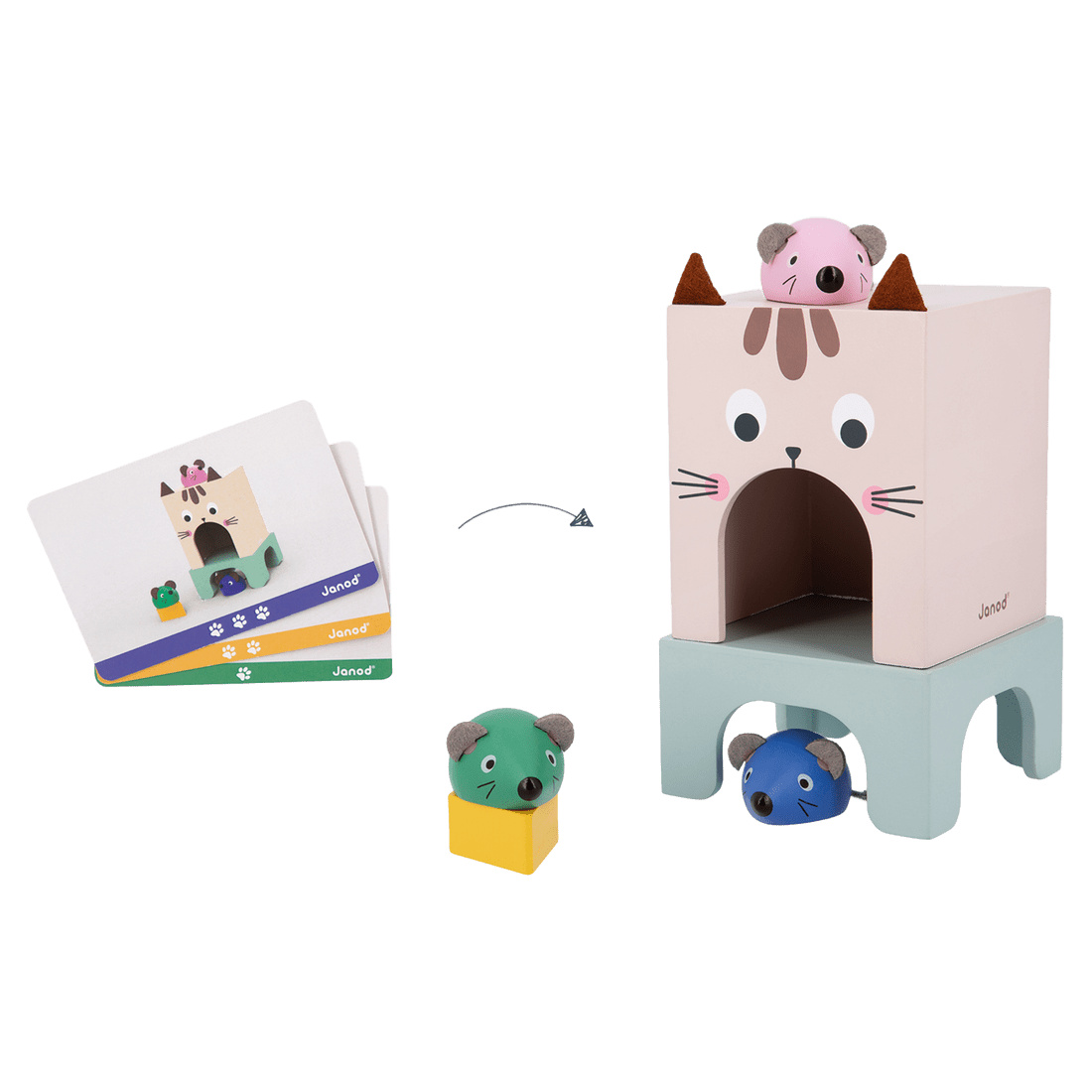 - Composé d'un chat, d'une table, de 3 souris, d'un fromage, 24 cartes modèles à reproduire.